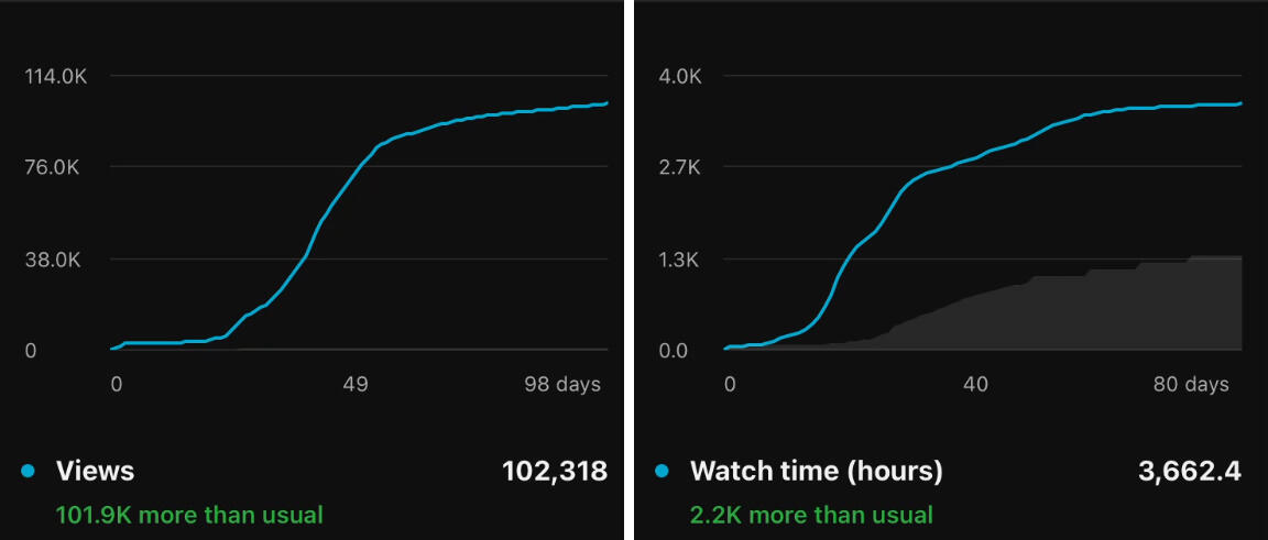 Now I'm sitting at 4,000 subscribers and 1,250,000 total views.